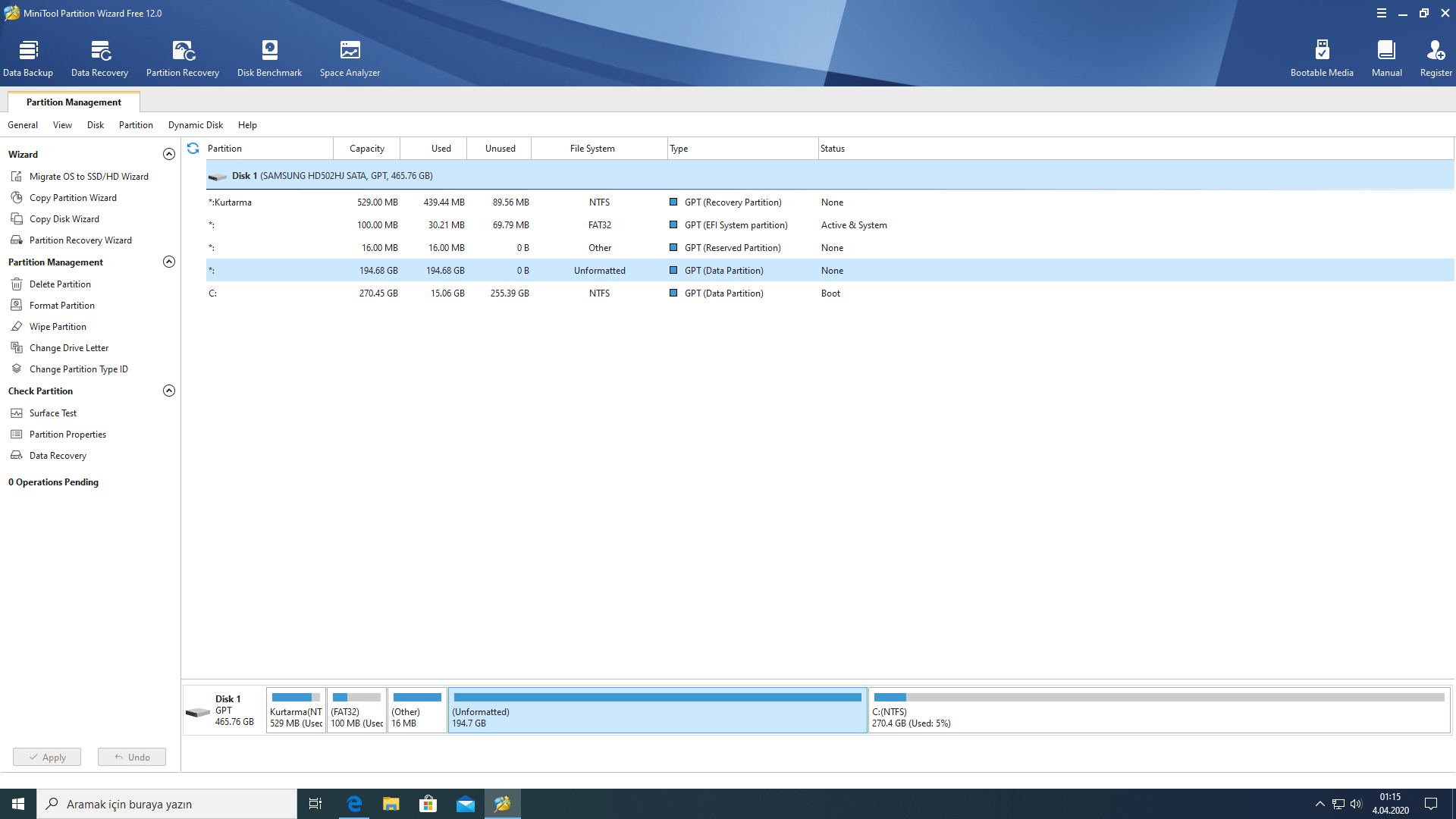 Arkadaşlar 500GB hard diskim var fakat Windows'u kurduktan sonra sadece C diski oluşuyor herhangi başka bir D veya başka bir disk oluşmuyor bunu nasıl çözebilirim?