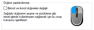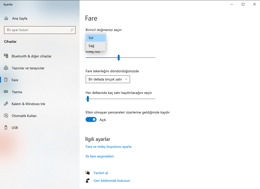Sol alttaki arama çubuğuna basın. Fare yazın. Fare işaretçisi görünümünü veya hızını değiştire tıklayın. Düğmeler kısmına gelin. Bu kutucuk tikliyse tiki kaldırın.