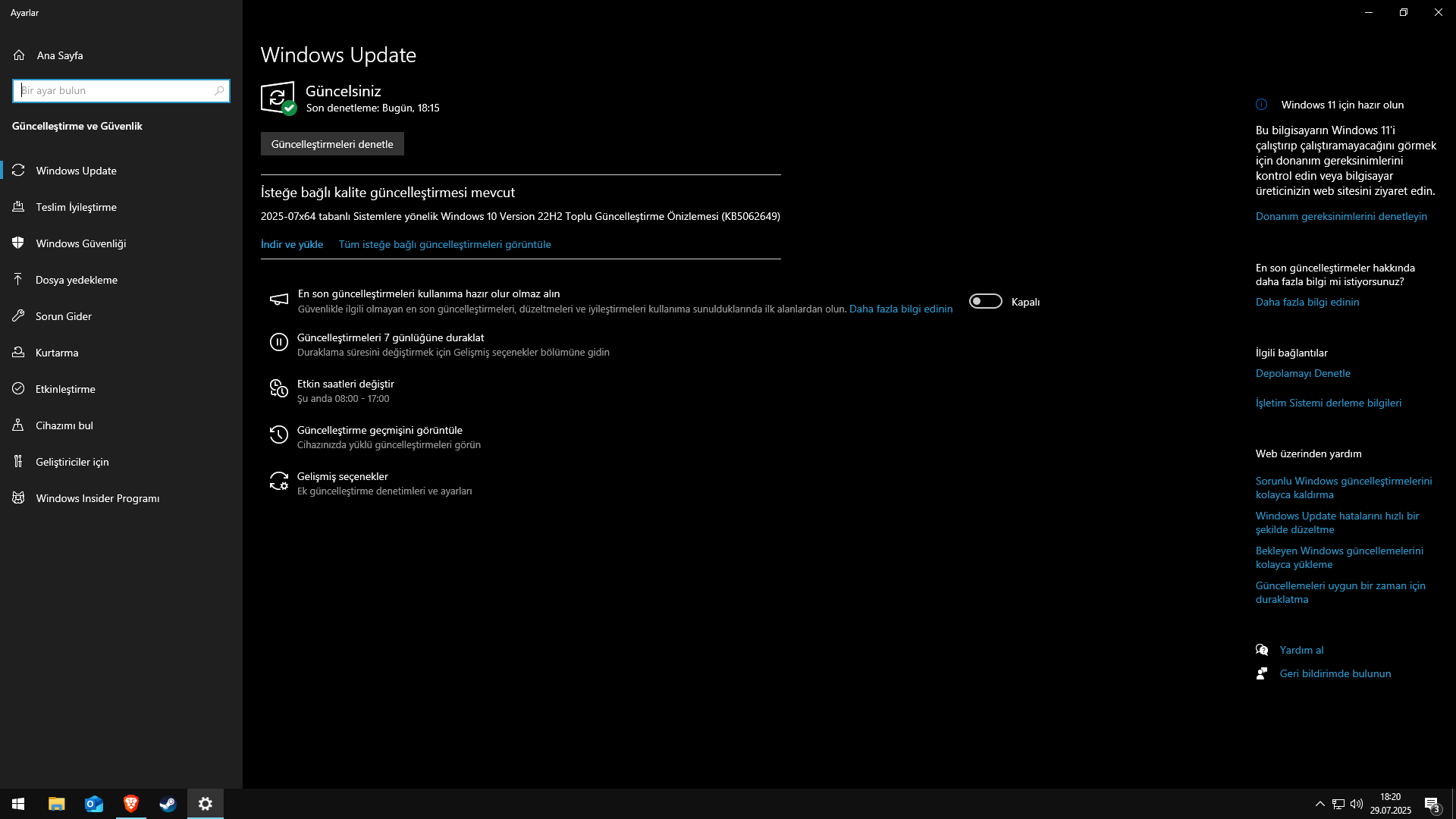 Windows 10 sistemde Windows 11'e geçin seçeneği yok