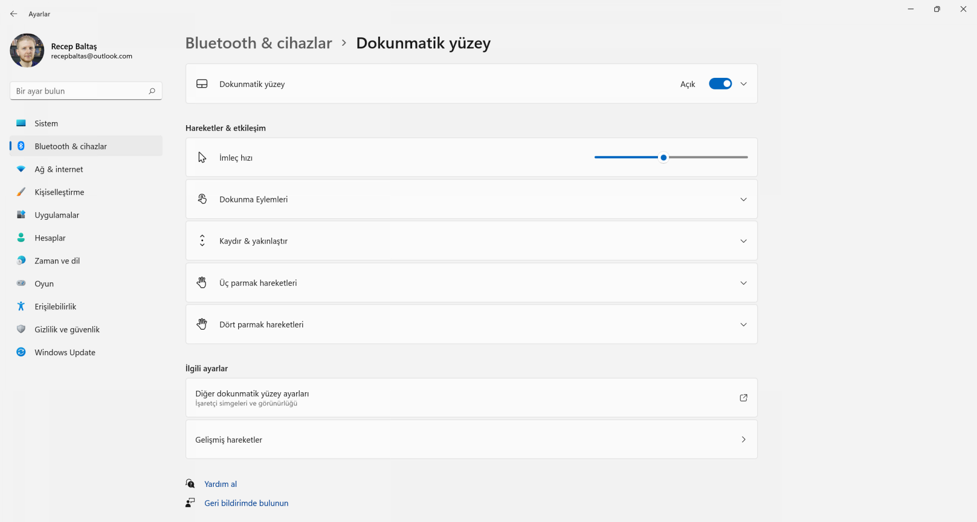 Bilgisayarı alalı 1.5 ay oldu. Daha önceden 3 veya 4 parmaklı dokunma hareketleri çalışıyordu ama şimdi çalışmıyor. Sürücü de güncel, yardımcı olabilir misiniz?