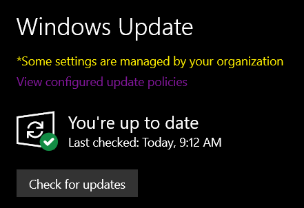 Windows 10 Update "some settings are managed by your organization"