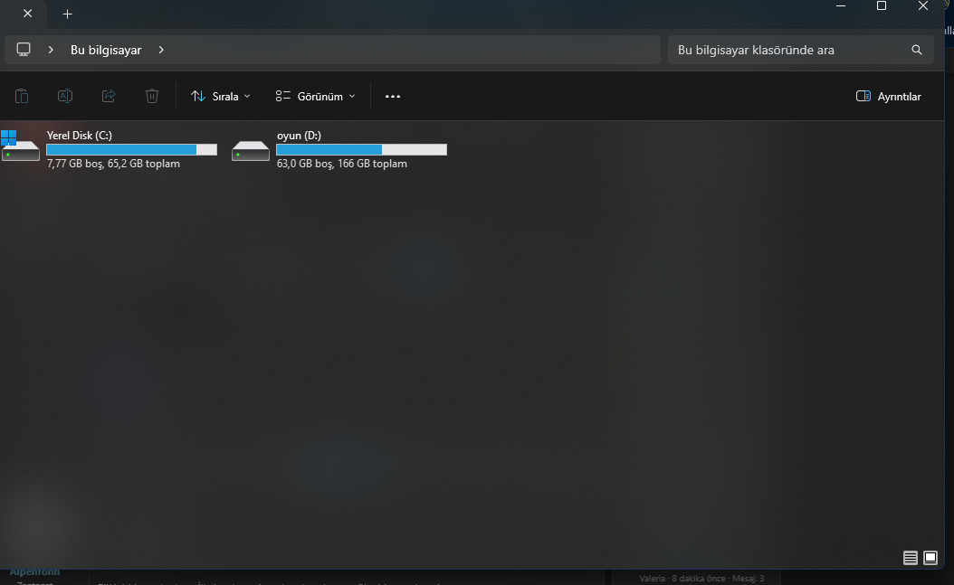 neXusTS Hectopat Katılım 19 Ocak 2023 Mesajlar 2.777 Makaleler 2 Çözümler 66 Daha fazla Sistem Özellikleri | AMD Ryzen 3 2200G 3.5 GHz - 16 GB 3000 MHz RAM - VEGA 8 Grafik Kartı (4 GB VRAM) | Cinsiyet Erkek 25 Nisan 2024 #19 TOCA dedi: Restart edince düzeldi hocam anca bu kadar oldu açık hocam saydam. Eki Görüntüle 2178349 Genişletmek için tıkla... İsterseniz kaldırıp tekrar deneyin bende komple saydam olmuştu. Ahmet06han dedi: Eki Görüntüle 2178351Evet. Genişletmek için tıkla... Hocam ZIP olarak açmışsınız içinde ki dosyaları bir klasör oluşturup onun içine atın.