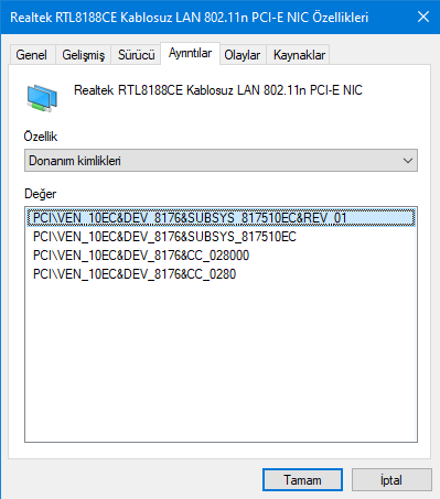 Donanım kimliklerinizi kopyalayıp yapışıtırabilir misiniz? Buradan bakarak yazmamız imkansız.