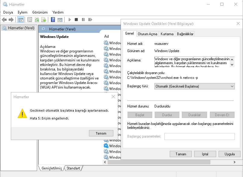 Geçenlerde bilgisayarımda bir sorunla karşılaştım, Microsoft Store'dan uygulama yükleyemiyor ya da güncelleyemiyordum ve "Ayrıntılara bak" tuşuna basınca "Windows Update'i aç" sorununu alıyordum ve altında ise "Windows Update devre dışı bırakıldı. Ayarlar'da Windows Update sorun gidericiyi çalıştırarak Windows Update'i onarabilirsiniz." yazıyor ve kod: 0x80070422 diyordu. Sonra ayarlara girip sorun giderden yapmayı deneyince sorunla karşılaşmıyordu. İnternetten araştırıyorum, services. Mscden yapıyorlardı ama oradan da açmayı deneyince erişim engellendi diyor. Ne yapmam lazım, yardımcı olabilir misiniz?