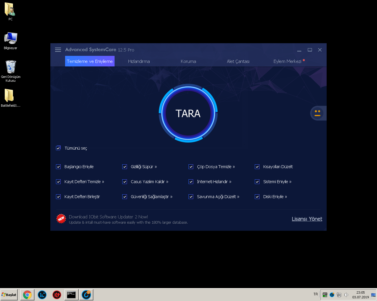 IObit yazılımları önerilmez ancak memnunsanız kullanabilirsiniz tabi. İleride alternatif düşünürseniz de Wise Care 365 öneririm.Eki Görüntüle 411874