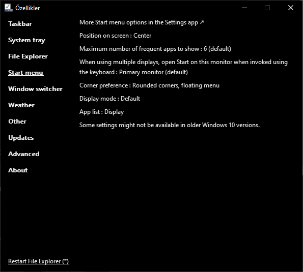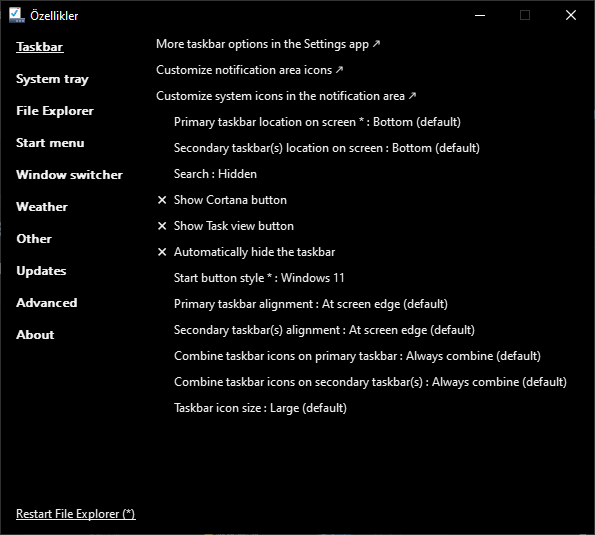 5. Sol altta bulunan "Restart File Explorer" kısmına tıklıyoruz.