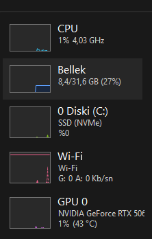 Bende de aynı şekilde de zaten o kadar RAM var dert edilecek bir şey mi bu? Arkada 10 sekmeli Chrome açık, müzik şu bu + en ağır oyunlarda 14 15 GB üstü RAM kullanımı görmedim açıkçası. Zaten ne kadar çok RAM varsa Windows ona göre fazla kullanıyor, gerektiğinde de o alanı boşaltıyor. RAM konusuna fazla takıyorsunuz kafayı. Eskiden 4 GB RAM olan bilgisayarlarda evet sıkıntı oluyordu ama modern işletim sistemi ve bilgisayarlarda o kadar kafa yoracak bir durum yok. Özellile 32 GB RAM varsa. Mesela 16 GB RAM'im varken Windows 3 4 GB kullanıyordu boşta en fazla. RAM'i 32 yaptım, 7-8 GB kullanmaya başladı.