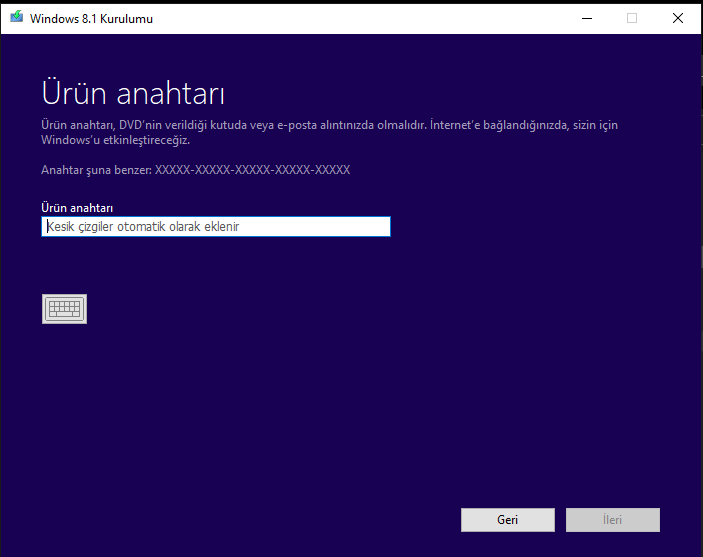 8.1 kurarken urun anahtarı ıstıyor atlama yok mu bunu