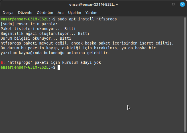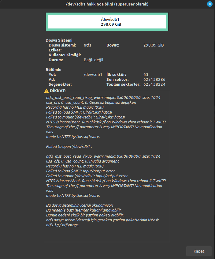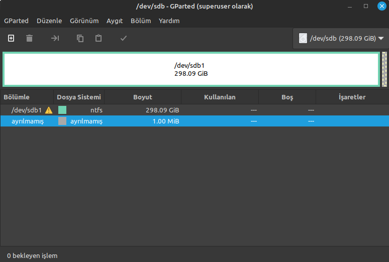 Gparted'de bu şekilde görünüyor ne yapacağım.