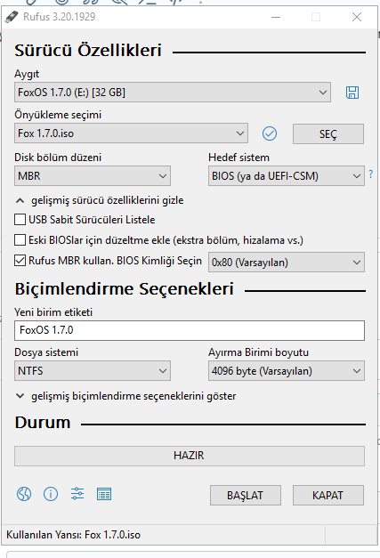 Selam arkadaşlar. Foxos Windows 7'ye geçeceğim. MBR yaptığımda starting Windows'ta duruyor. Rufus'ta da sadece MBR var.