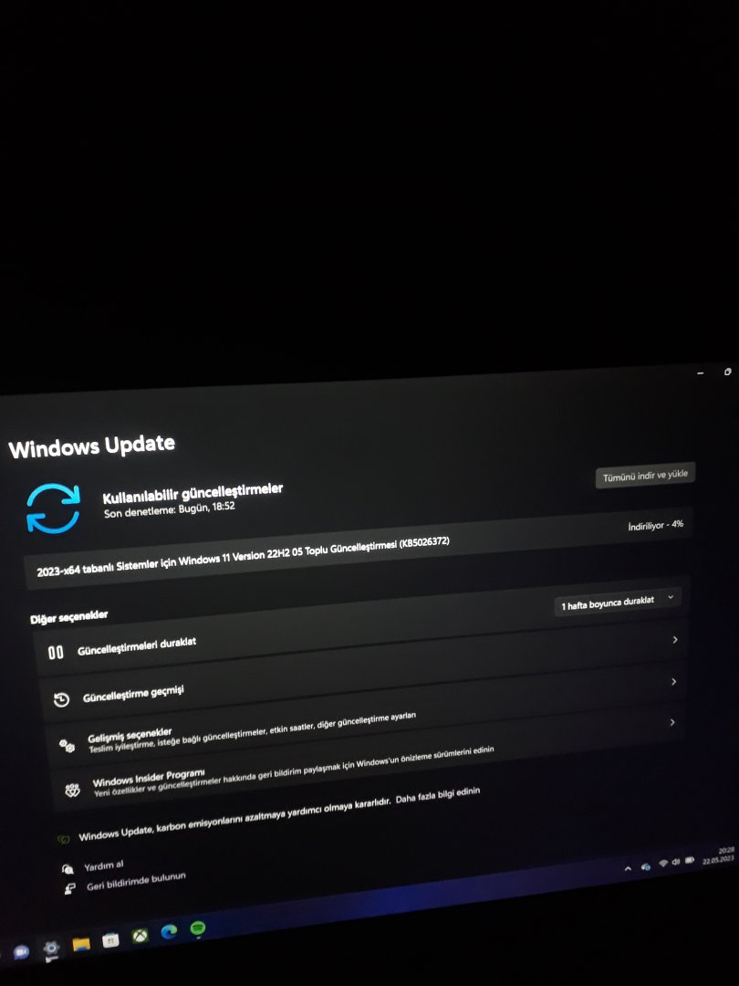 Bir de Windows güncellemesi yapmak istiyordum ama güncelleme %2'de ve uzun süredir bekliyorum.