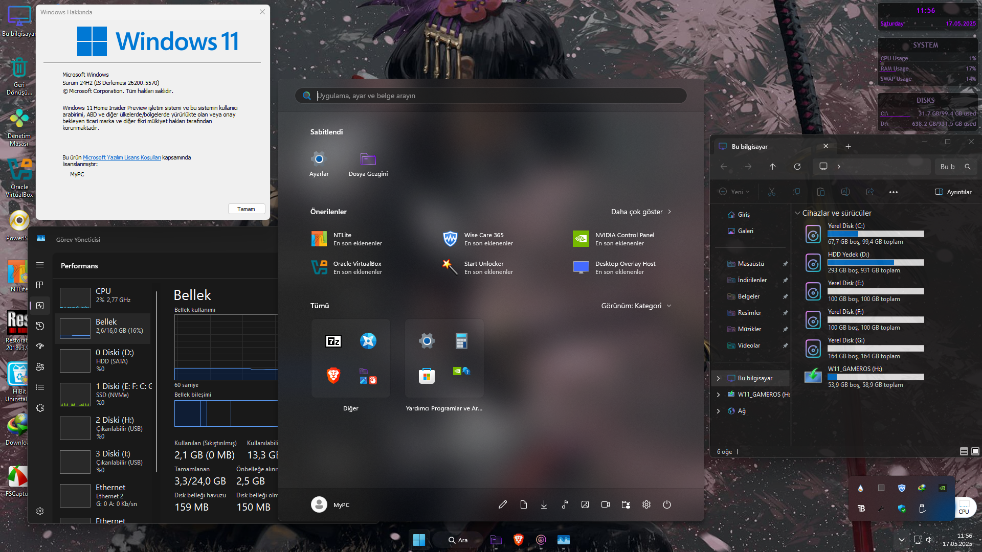 bigcherry dedi: Sürekli bildirim gönderiyor sorun oluştu, indiremedik gibi. Sizce kurmalı mıyım ve kurmasam sorun olur mu? Genişletmek için tıkla... 25H2 Insider dev 5570 kullanıyorum sorun yok şu an. NTLite ile kendi modladıgım ISO, RAM kullanımı 2 GB civar bosta vs.