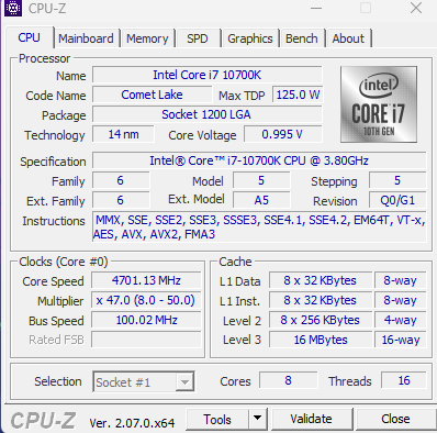 Intel(R) Core(TM) i7-10700K CPU @ 3.80GHz 3.79 G