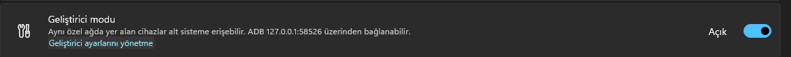 1. Adım: Windows Subsystem for Android uygulamasını açıp Geliştirici Modu aktifleştirmeniz gerekiyor.