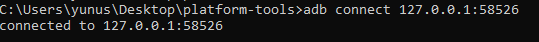 4.Adım: Şimdi ise Subsystem for Android uygulamasında yazan ip ye şu komut ile bağlantı yapmamız gerekiyor (Ip adresi değişiklik gösterebilir).