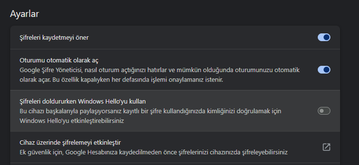 Chrome üzerinden otomatik şifre doldurmak istediğimde karşıma Windows hello koruması geliyor.