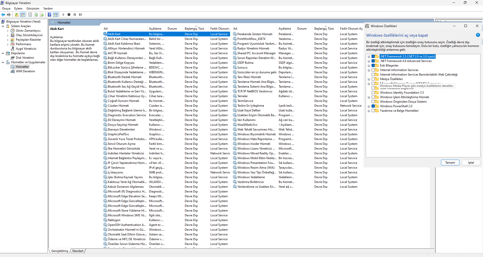 Çözümü buldum normal de işlem sayısı 160'dı 107 oldu (Windows 10 kullanıyorum artık)