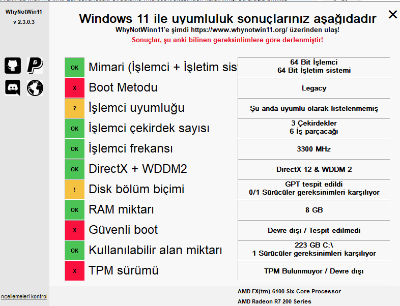 Bu uygulama 8. nesilden eski işlemcilerde çalışamaz diyor. Hatalı yani. Gayet rahat çalışıyor.Bu değil mi Microsoft uygulaması?Windows 11 Uyumluluk Denetleyicisi