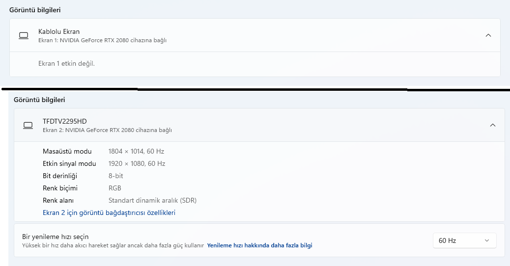 İkinci ekranıma görüntü gelmiyor. Ne yapabilirim? Her şeyim güncel.