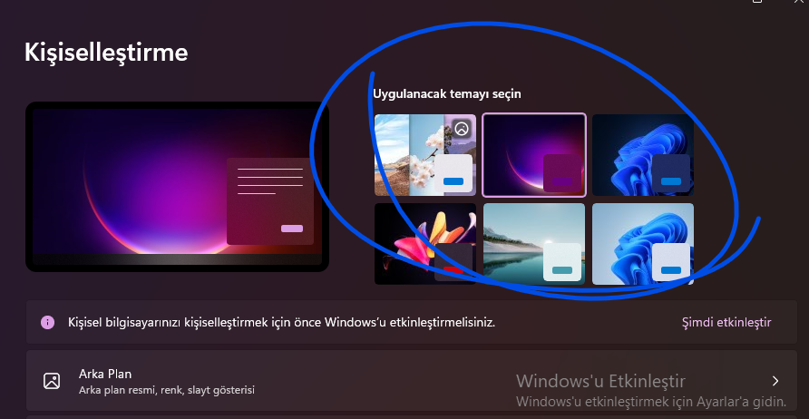 Windows etkin olmadığı zaman kişiselleştirme seçeneği kapalı oluyor.
