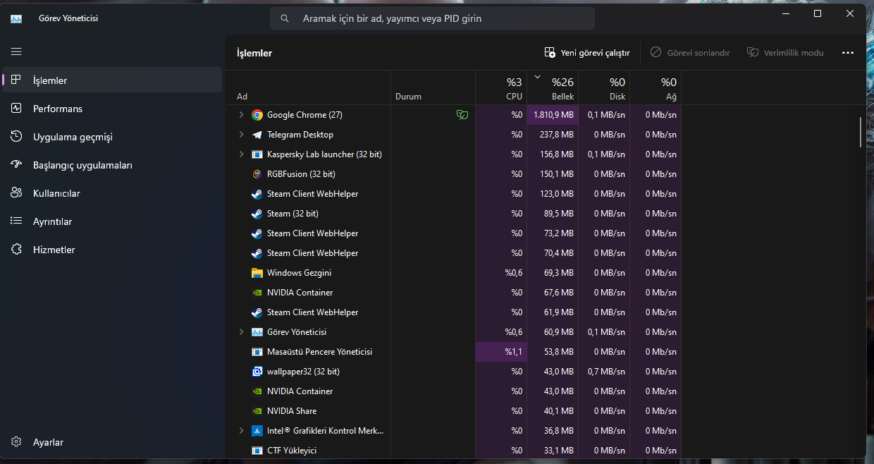 PC boşta olmaına rağmen böyle gözüküyor. Bunların bir yararı var mı? Yoksa nasıl kapatabilirim?