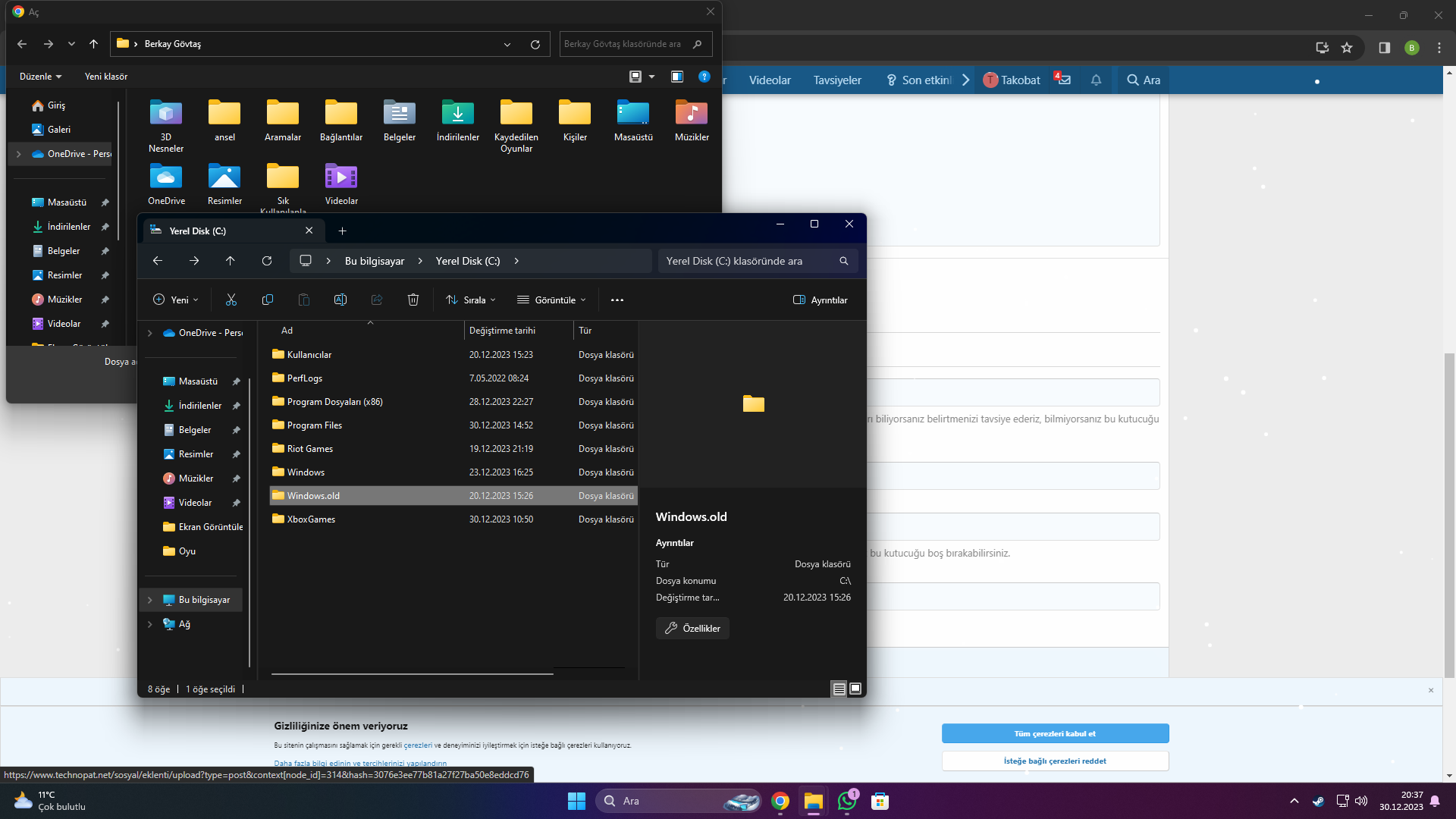 Windows 11 geçtikten sonra windows.old diye bir klasör oluştu