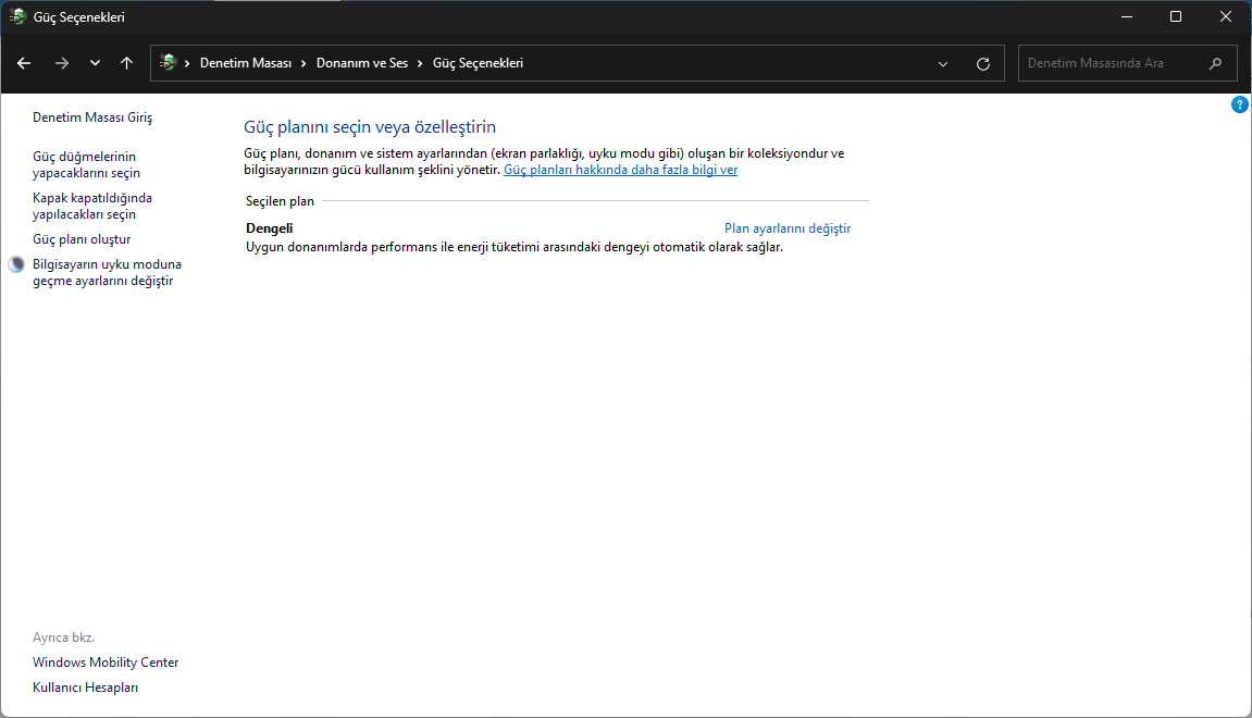 Windows 11 denetim masasındaki güç seçeneklerinde sadece dengeli seçeneği var, yüksek performans seçeneği bulunmuyor. Güç planı oluştur'a tıkladığım zaman yine sadece dengeli seçeneği var. CMD'ye yazılan kodlarla işi çözmeye çalıştım fakat yine olmadı. Sonuç olarak sadece dengeli seçeneği var ve yüksek performans seçeneği bulunmuyor.