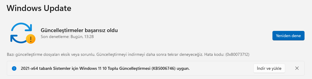 Tarih 06.11.2021, yenı bir topluluk güncellemesi ve zorunlu yüklemeli. Yükleye bastım, %100 oldu ve şu hatayı verdi.
