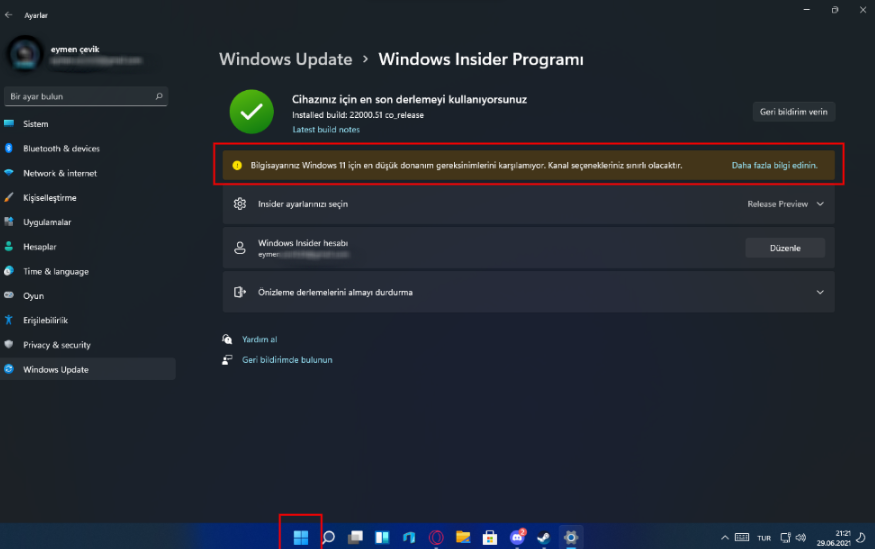 Deneyim hemen. Bir de Windows Insider programına katılmam gerekiyor mu? 11, 2 haftada bir günceller mi katılmasam da? :)