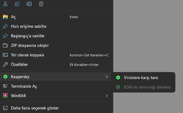 Windows 10'da Kaspersky yüklü iken herhangi bir bir uygulamaya sağ tıkladığımda KSN tarama sonucuna bakabiliyordum fakat bu özellik Windows 11'de yok. Sebebi nedir?