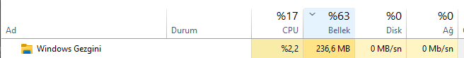 4. Explorer.exe çok fazla RAM yiyor.