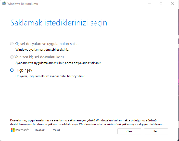 Windows içerisinde ki sıfırlamayı kast etmiyorum Windows yükleme medyasından setup.exe'den temiz kurulum yapınca aynı ekran gözüküyor bunu kastediyorum bilmeyen konuşmasın lütfen tek tek anlatmaktan sıkıldım.