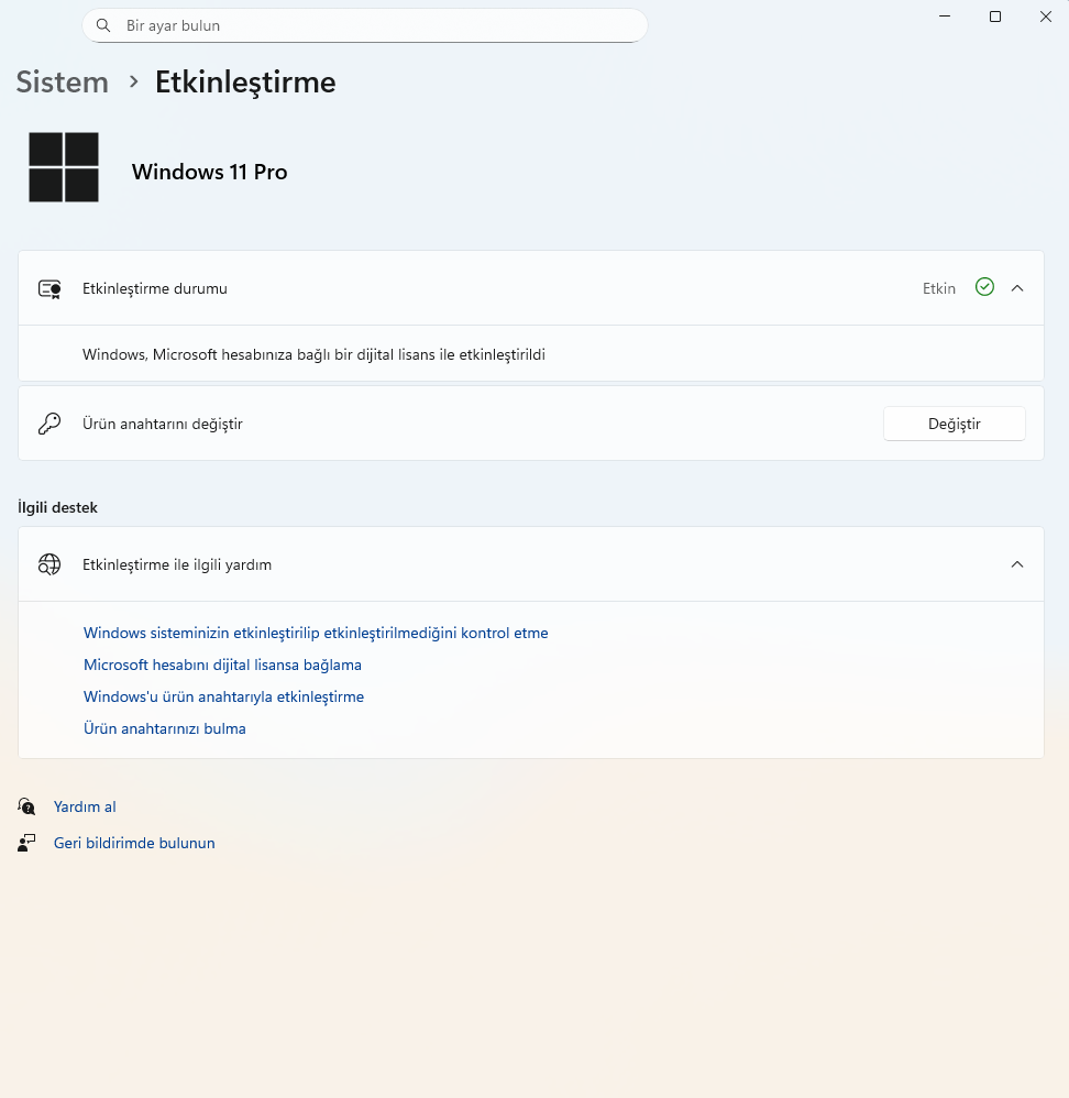 Öncelikle herkese hayırlı forumlar. Benim Windows 11 Pro yazılımına sahip bir bilgisayarım var ve ben yeni SSD aldığımdan dolayı bilgisayarı formatlamam gerekiyor. Lisans anahtarımı görmeye çalıştım önce CMD üzerinden gerekli kodları ile ancak lisans anahtarım çıkmıyordu, sonra ise showkeyplus uygulaması üzerinden lisans anahtarımı görmeye çalıştım ve bu sefer de anahtarım mevcut değildi, ama sorun şu ki bilgisayarım lisanslı bunu örnek fotoğraflarda da görebilirsiniz. Ayrıca dijital lisans ile etkinleştirildi yazıyor bilgisayarımı böyle aldım bir tanıdığımdan ona da lisans anahtarını sorduğumda pahalı olduğu için almadığını söylemişti ama lisansı mevcut. Yardımınızı bekliyorum bilen kişilerden. Şimdiden teşekkür ediyorum.