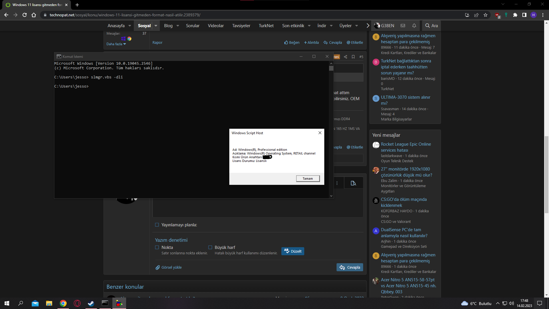 CMD'ye bu komutu yazıp lisansınızı bir yere kaydedin her duruma karşı silinirse yeniden kullanırsınız.