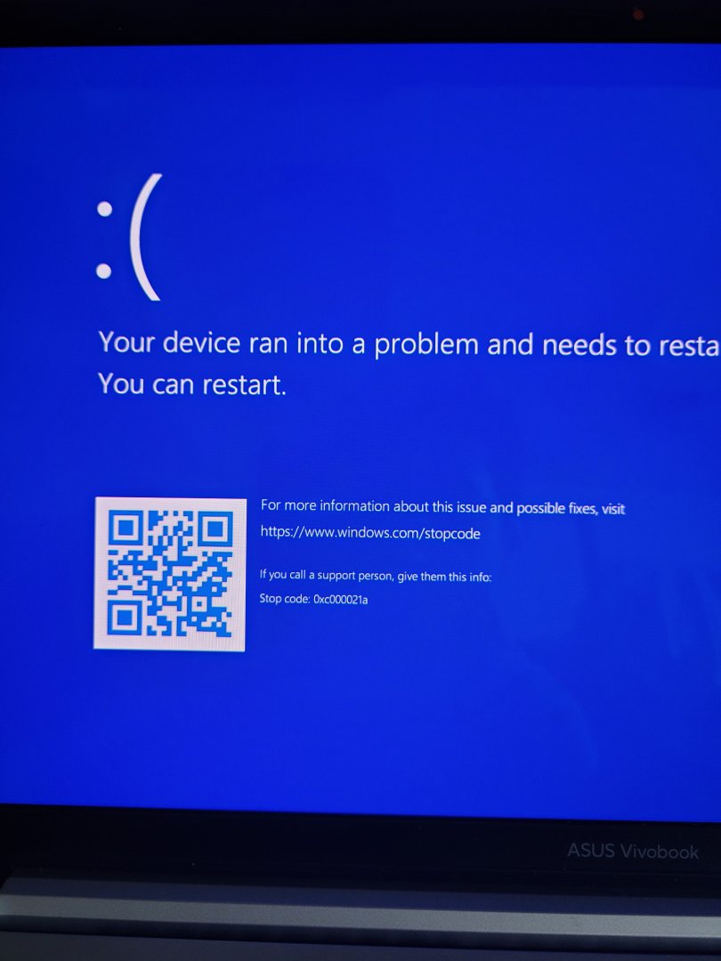 "0xc000021a". Güvenli modda donanımları kontrol ettim sorun yok görünüyor.