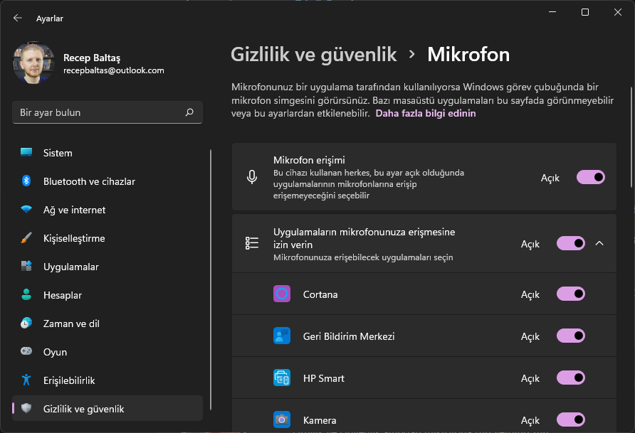 Daha doğrusu mikrofonda bir sorun yok ayarlardan mikrofon testi yaptığımda sesimi duyabiliyorum fakat Microsoft Teams ve diğer uygulamalarda mikrofon çalışmıyor. Her türlü ayarı denedim ama hiçbir şey düzelmiyor. Bugün güncelleme gelmiş onu da yaptım ama buna rağmen hala düzelmedi. Başka daha ne yapabilirim?