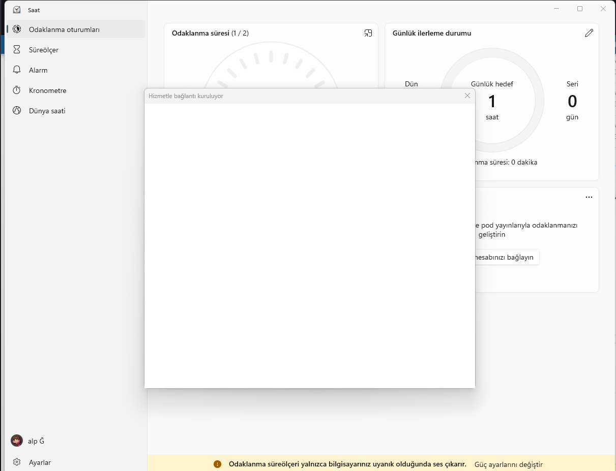 Odaklanma oturumundayken Spotify hesabıma bağlamak istiyorum fakat bağlanırken "hizmetle bağlantı kuruluyor" kısmında kalıyor ve yanıt vermiyor. Önceden bağlanıyordu. Sorun nedir acaba? (Spotify Premium kullanıyorum önceden sorunsuz bağlanıyordu.)