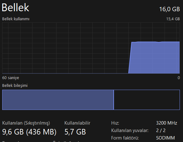Merhabalar, 3 gün önce bilgisayarıma yeni RAM taktım. Toplam 16 GB RAM var. Fakat Windows 11 RAM'in %40'ını kullanıyor. Normal mi?