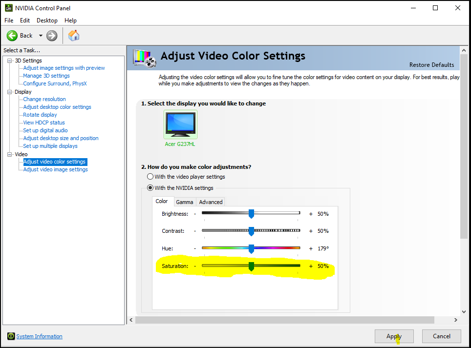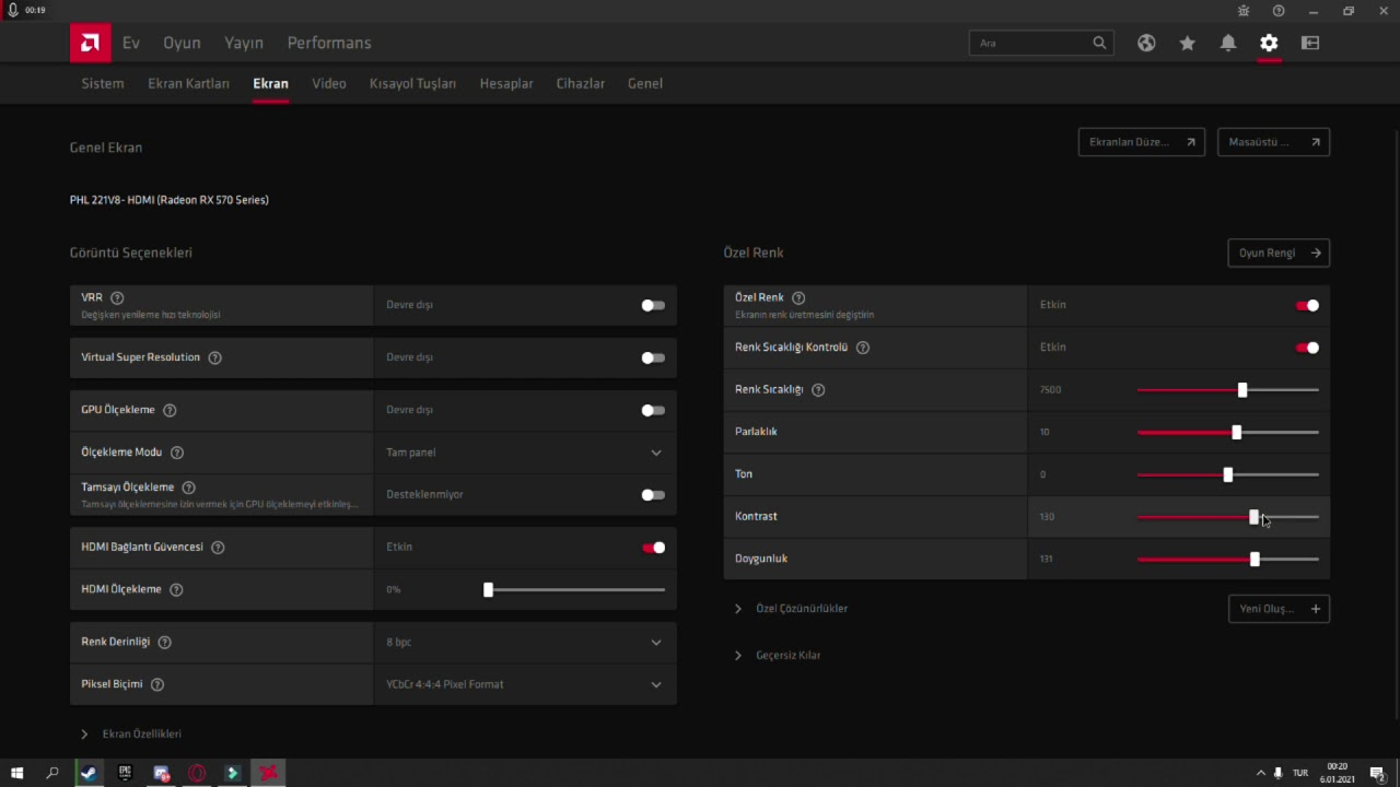 Kardeş hangi GPU'yu kullanıyorsan, o GPU'nun sürücü ayarlarından renk ayarı yapacaksın.