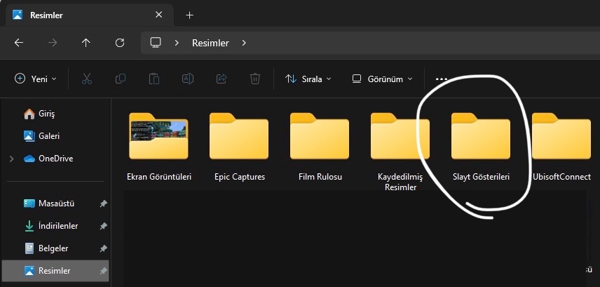 Resimler klasöründe slayt gösterileri diye klasör oluşmuş bu nedir?