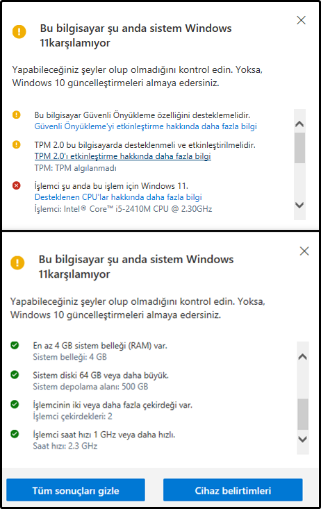 Bu Bypass'ı uygulamamız tabii ki bize bazı engeller de koyuyor, Microsoft da bizi bu konuda uyarıyor: