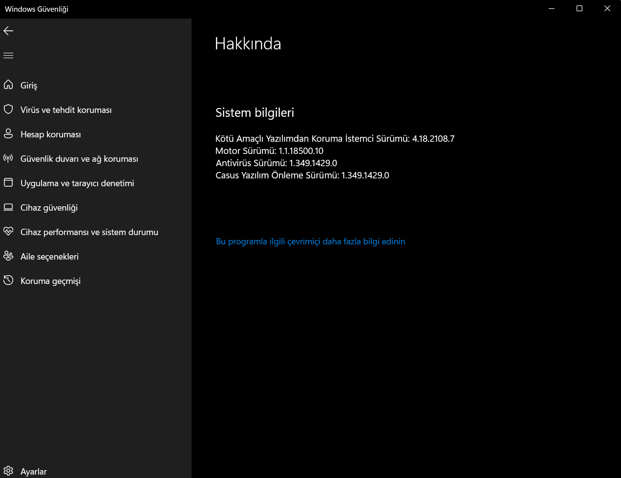 Peki Windows Defender'a gel bakalım hakkında kısmına bir de bu bileşene bakalım. Demek ki yukarıda attığım bileşen install.wim içerisinde değil.