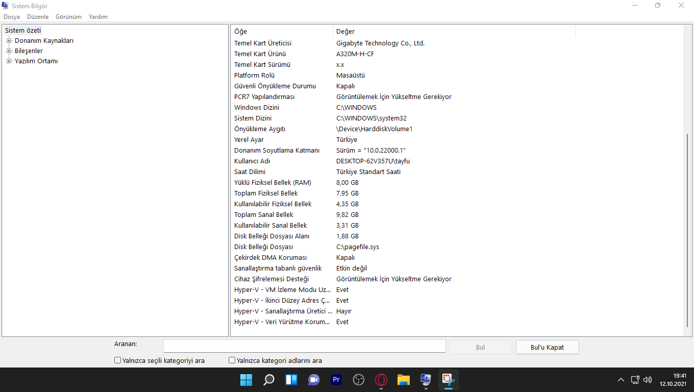 Sistem bilgilerim;