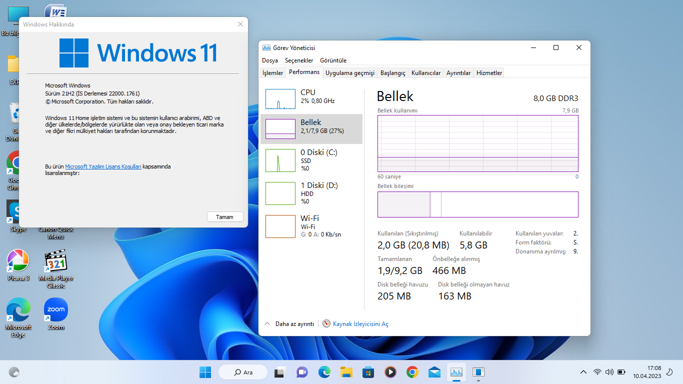 Yukarılardan da gördüğümüz gibi Windows 10-11'de custom sürümler kullanılmadan özellikle 8 GB ram ile oyun oynamak imkansız. En az 16 ya da özel imajlar kullanılmalı yani. Şu an ben yeni Windows 10 format atmama rağmen boşta 3 GB dolaylarında dolaşıyor.