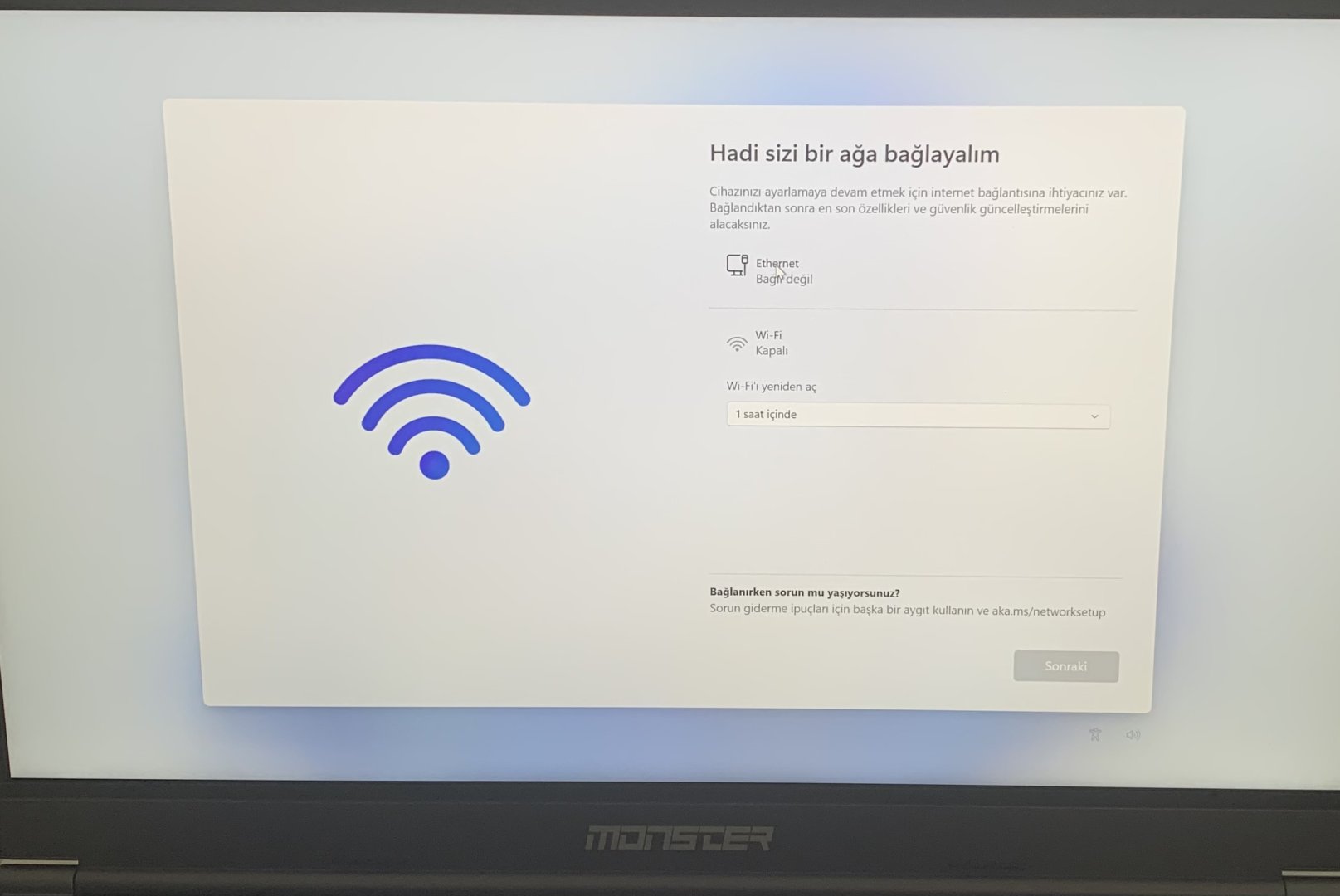 Arkadaşlar Windows 11 22H2 sürümünü yerel hesapla kurulum yapayım dedim ve hesap istenen ekranda Görev Yöneticisi'ni açıp ağ istemcisini kapadım. Ancak işe yaramadı ve sürekli aynı ekrana atıyordu ben de komple Wi-Fi'yı kapadım. Nasıl kapadım bilmiyorum ayarlar sekmesi açılmıştı ve şu an böyle kaldı. Şu Wi-Fi'yi nasıl tekrardan açarım?