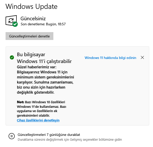 Ya Windows update ile güncellemeyi bekleyeceksiniz ya da Microsoft un yayınlamış olduğu Windows 11 yükseltme aracılığıyla güncelleyeceksinizbana update sayfasında bu şekilde bilgi geldi, ne olacak şimdi ? Eki Görüntüle 1181334Eki Görüntüle 1181334