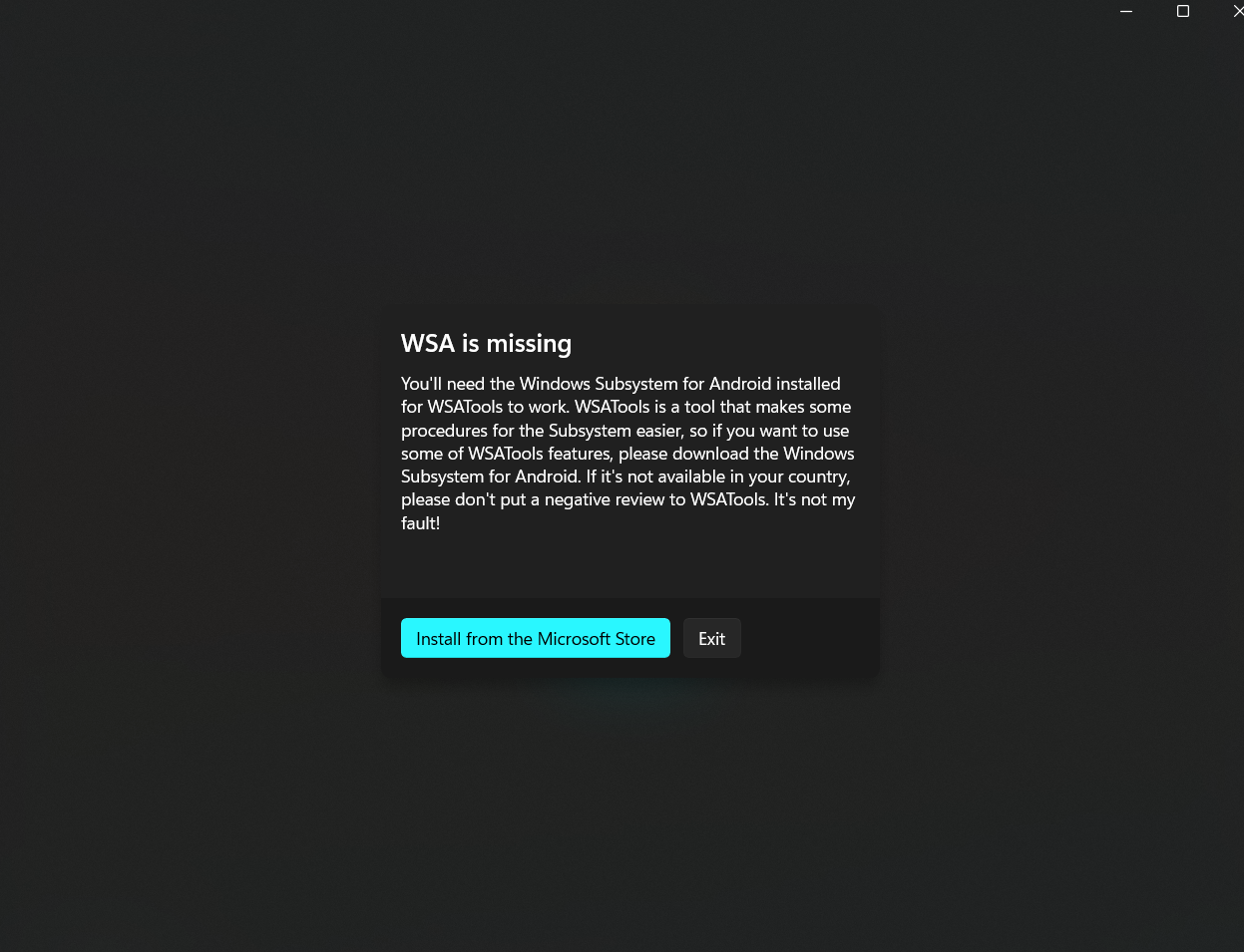 WSA'nın çalışması için bunu yüklemeniz gerek.