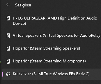 Ses çıkışı seçeneklerinde oluyor. Bende aynı kulaklığı kullanıyorum. Sağ altta ses simgesine tıkla orada cihaz isimlerinden seç.