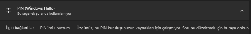 Bilgisayarımda pın var ama değiştirmek istediğim zaman pın (Windows hello) kısmına geliyorum ama orada da şöyle bir sorun çıkıyor;