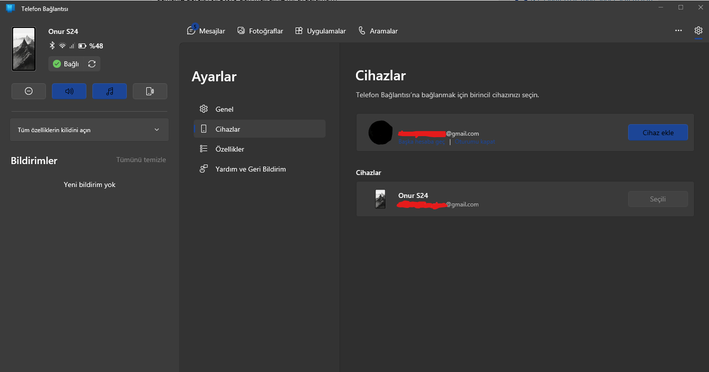 Ayarlar Bluetooth ve cihazlar a geliyorum mobil cihazlar diye bir yer yok sanırsam sadece Windows 11 de oluyor.